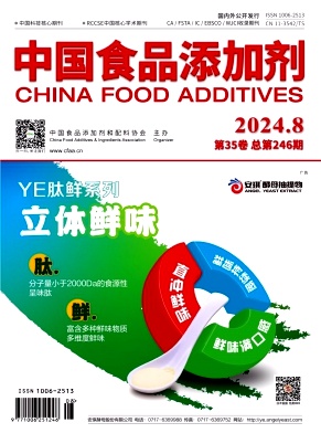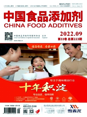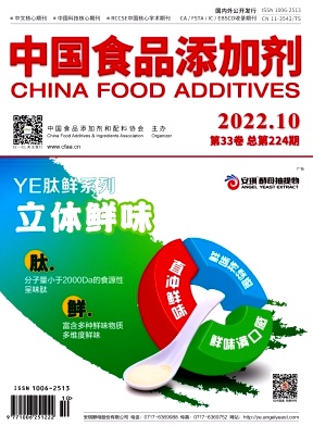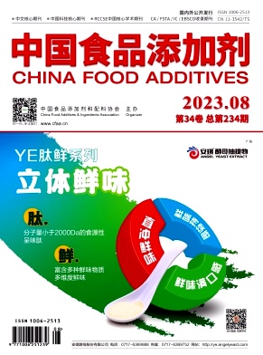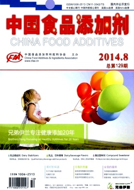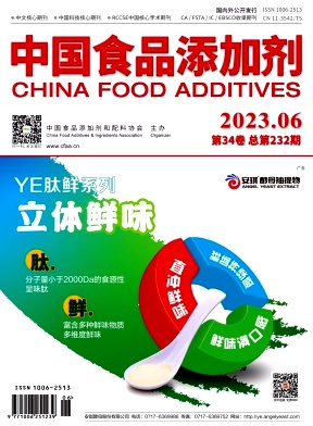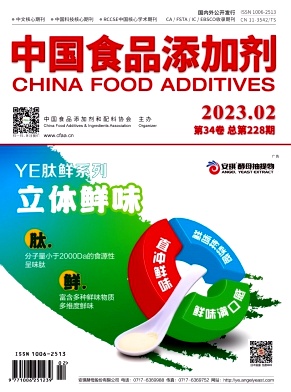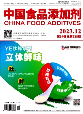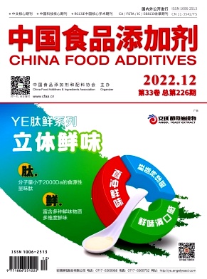 彭婷;陈志元;赖富丽;陈阳;王玉;陈存;本研究以砂仁为原料,通过不同提取方式制备了6种不同规格的砂仁提取物,分析6种砂仁提取物主要有效成分含量的差异;并基于高通量筛选模型,通过体外酶活性检测,分析6种提取物对黄嘌呤氧化酶的抑制效果。结果表明,6种砂仁提取物中有效成分含量存在显著性差异(P<0.05),主要活性成分分别为总多糖、总多酚、总黄酮的砂仁提取物对黄嘌呤氧化酶均有抑制活性,砂仁总黄酮抑制活性最高。在一定浓度范围内砂仁提取物中总黄酮的含量与黄嘌呤氧化酶抑制活性呈正相关,当砂仁提取物(总黄酮≥50%)浓度达到0.8 mg/mL时,其对黄嘌呤氧化酶的抑制活性与阳性对照组别嘌呤醇基本相当,抑制率达到(98.98±0.13)%。研究结果为以砂仁药材为原料的降尿酸食品的开发和利用提供数据支撑。